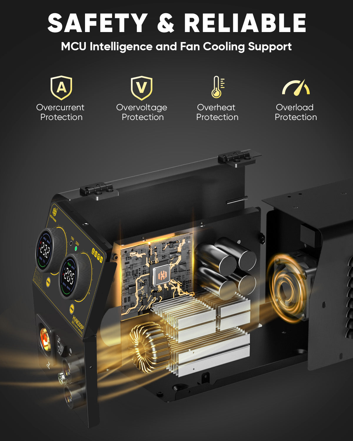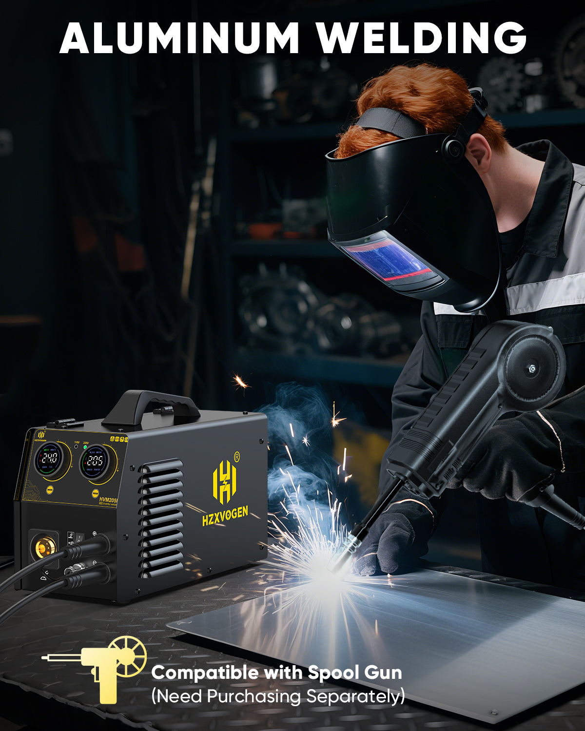 The HZXVOGEN HVM205P is a high-performance multiprocess inverter welding machine designed for versatility and precision. This 5-in-1 unit supports Gas MIG, Flux Core MIG, Stick (MMA), Lift TIG, and Spool Gun welding modes. Utilizing advanced IGBT inverter technology and MCU intelligence, it provides a stable arc and superior heat control for both professional and DIY fabrication tasks.
