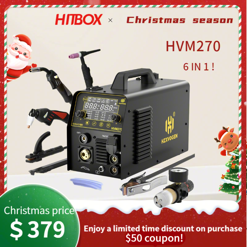 HVM270 Aluminum MIG Welder and Plasma Cutter Combo 6 IN 1 Gas/Gasless MIG/Stick/Lift TIG/CUT/Spot 220V Multi Process Welder with IGBT Inverter, Max Cut 15mm